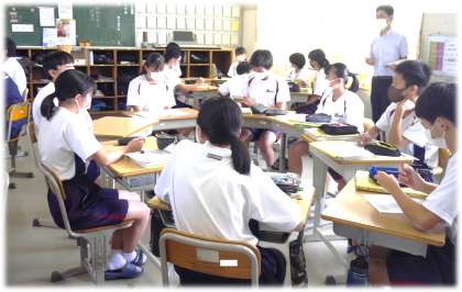 「記者会見型スピーチをしよう」と、それぞれが司会者、発表者、記者役という役割分担をしながら、魅力的なスピーチを目指して、表現活動を行っていました。緊張感のなかにも、自分の伝えたいことを一生懸命に「語る」姿が見られました。