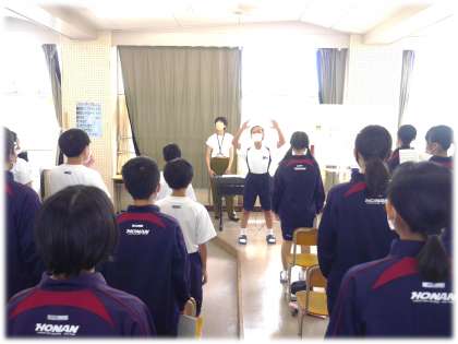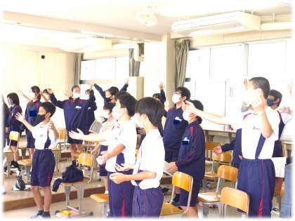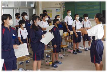 強弱で印象が変わることを確認したり、体全体を使って声を出していくために、音が広がるイメージを動作で表現したりしながら、自分たちの歌声を磨いています。