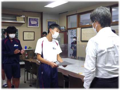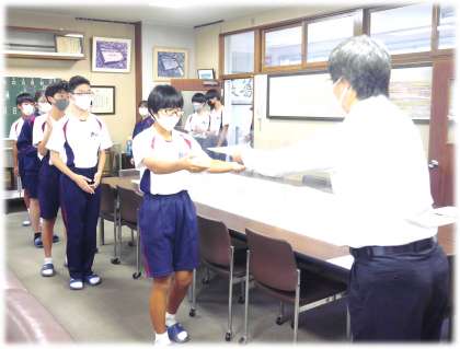 校長から受け取る際の返事や目線に、2年生の意気込みを感じた朝の風景でした。