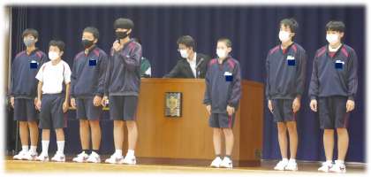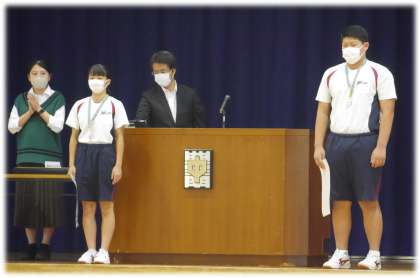 終業式に先立って、各方面で活躍した生徒のみなさんの表彰が行われました。