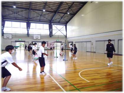 体育館では、バレーボールに汗を流す1年生の元気のよい声が響いています。