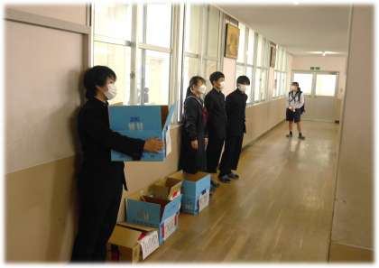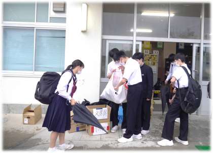 総合的な学習の時間の追究活動として、実際に自分たちに取り組めることを計画し、実践に移す3年生がいます。この学級は、全校にも呼びかけを行い、リサイクル活動を実施中!3年生の呼びかけに応えるように活動に協力する3年生の仲間、後輩たちの姿が今朝も見られました。