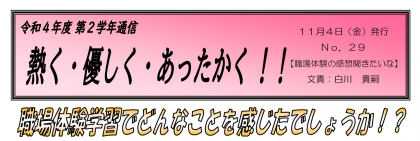 【11月4日発行】2年生 学年通信 第29号
