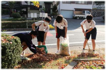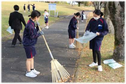 こちらは、地域の公園へ出かけて行き、落ち葉拾いやごみ拾いを行いました。