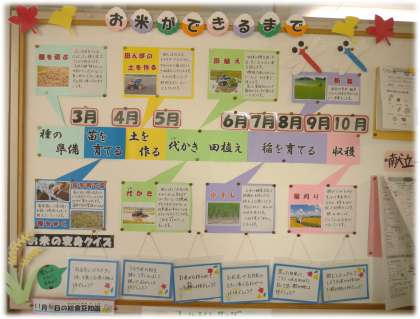 11月に入り、食育掲示板も更新されました。「お米」に関する情報が盛りだくさん。小学校の社会科で学んだことを思い出す人も多いかもしれませんね。