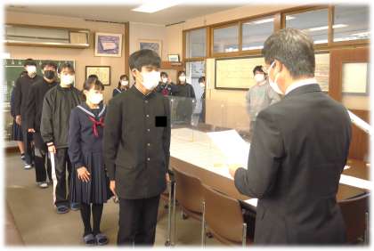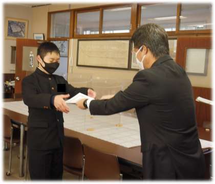 校長室入室前に、一度学年の先生からの呼名に一人ずつ応える場面がありました。前の仲間の返事の大きさに応えるように、徐々に返事の声が大きく、はっきりと変化する様子も見られました。「自分から」「仲間に応えるため」そんな気持ちで学年の一員として、かけがえのない日常を積み重ねているのだと感じる一場面でした。