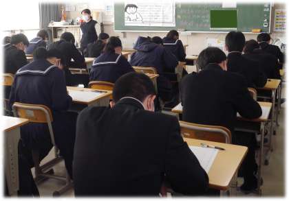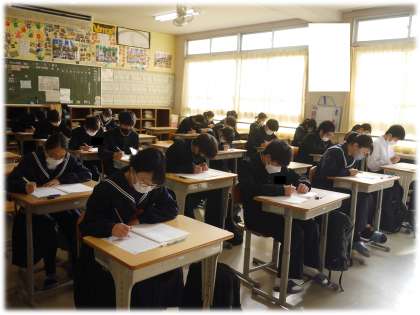 今年度最後となる第3回学習診断テストに3年生は朝から臨んでいます。これまでの2回の結果をもとに、今日を迎えるまでに自分の力を蓄える取り組みを続けたきた3年生。1時間1時間のテストに真剣に向かう姿は、今の自分の力を最大限発揮しようとする強い思いを感じます。