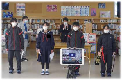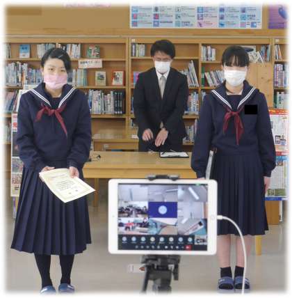 (写真下)ライオンズ表彰を受賞した3年生と美術作品展で優秀な成績を収めた3年生