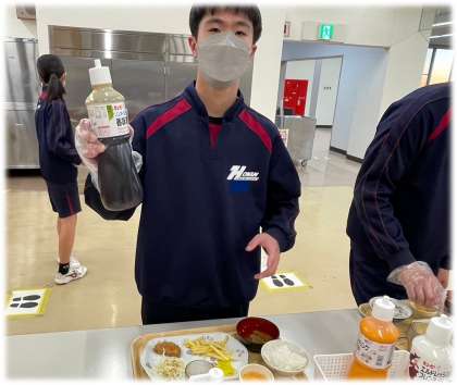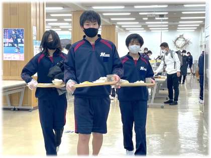 仲間と一緒に食べる食事。いつもの給食の時間とはまた違った、特別感がありますね。