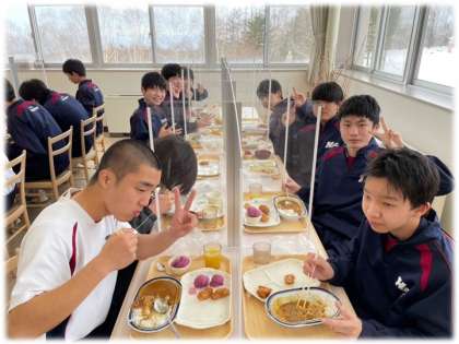 乗鞍青年交流の家での最後の食事です。