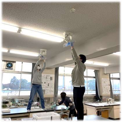 1月14日(土)【育友会】校内整備活動で天井扇風機を清掃しました