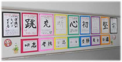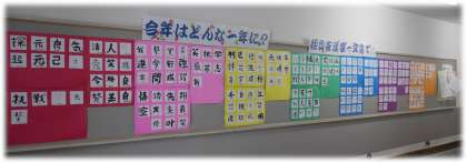 1・3年生の学年掲示板には、新年の抱負が掲示されています。