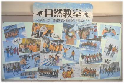 渡り廊下の掲示板に自然教室の様子の写真が掲示されました。早速、掲示物をうれしそうにながめる2年生の姿を微笑ましく感じます。