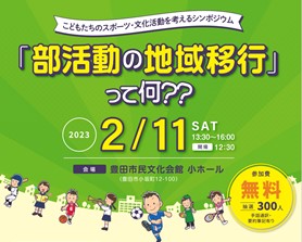 2月11日(土)午後1時30分から豊田市民文化会館にて、「部活動の地域移行って何??」と題し、シンポジウムが開かれます。抽選で300名、参加費は無料です。詳細は、下記チラシでご確認ください。