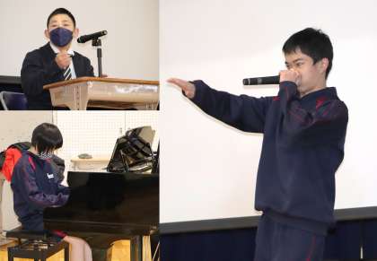 クイズ、体操、ものまね、歌唱、ダンス、ピアノ、ボイパ、和太鼓演奏等、「我こそは」と名乗りをあげた生徒たちが、自分の「大好き」な分野を堂々と学年の仲間の前で披露しました。
