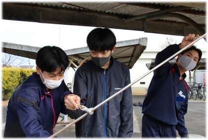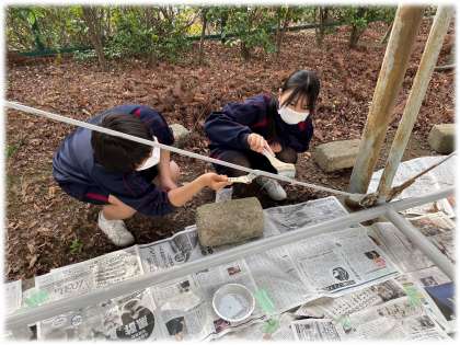 1組は、自転車置き場の支柱等のペンキの塗り直しを行いました。次第に、「この上の部分も塗っていいでしょうか」と、その眼差しは、まるで職人のようです。細かい部分まで、丁寧に塗り進めていきます。