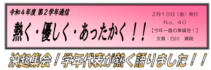 【2月10日発行】2年生学年通信 第40号