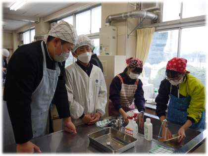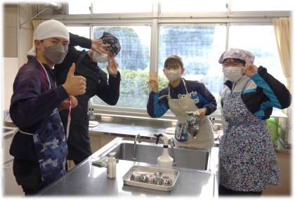 コロナ禍で、昨年度まで控えていた調理実習。卒業前に、感染症対策を行いながら、実施しました。実習できる喜びを、生徒も教員も感じています。