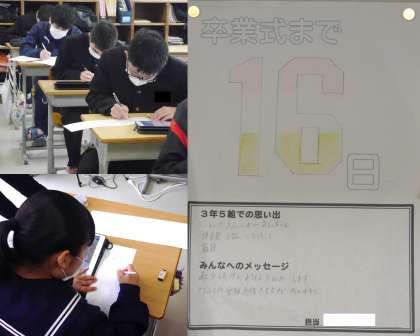 週1時間しかない教科は、いよいよ「最後」の授業を迎えている教科もあります。(早い教科では、先週で中学校生活最後の授業を終えた教科もあります)