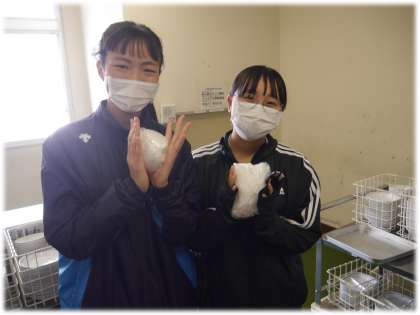 給食委員や給食当番の生徒が中心になって、配膳の準備・片付けを手際よく行っています。