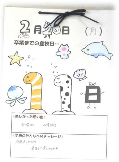 2月20日(月)3年生 カウントダウンが・・・