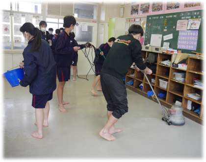 午後の時間を使って、1年間仲間とともに過ごした教室をきれいにしました。