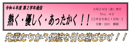 【2月24日発行】2年生学年通信 第42号