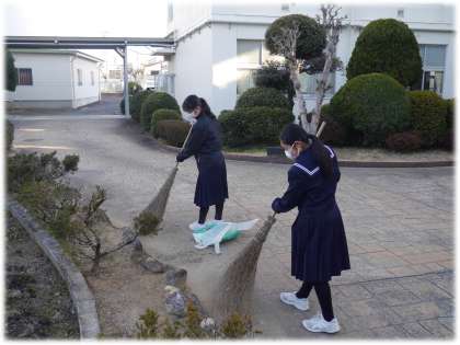 先週金曜日に行われた朝清掃ボランティアの引継ぎを受けて、今朝の薔薇園では、3年生に加えて、早速2年生の活動する姿も見られました。