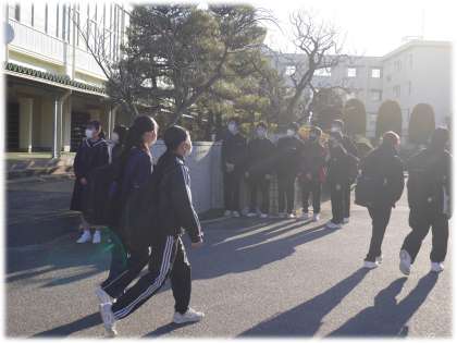 2月最終週。今朝の正門では、あいさつ運動を行う生徒たちのさわやかな声が響き渡っていました。あいさつが響き合うひととき、元気が出てきます。