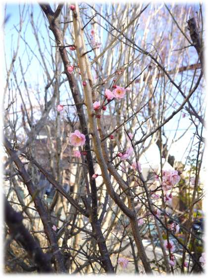 紅梅もかわいらしく咲いています。目立たない場所にありますが、豊南中のみなさんは、どこの場所かわかりますか?