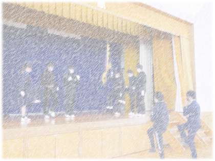 今朝も旗手の生徒たちが、熱心に体育館で練習を行っていました。