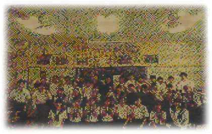 一ます一ます、地道に色を塗り、学級みんなで張り合わせると、3年生の学級集合写真があらわれました。