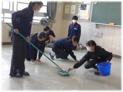 3月8日(水)2年生 ワックスがけの様子4