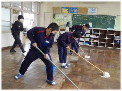 特別支援学級では、それぞれの学級で、午前中の時間を使って、教室の床を丁寧に磨き、ワックスがけを行いました。