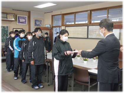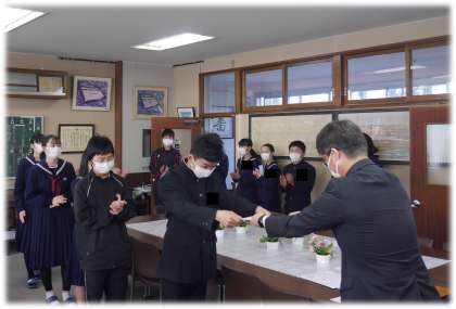 学年主任の呼名に、精いっぱい応える返事。卒業生が最後に魅せてくれた卒業証書授与の呼名と重なるようです。ここにも、卒業生が後輩へ残してくれた想いが引き継がれていることを感じます。