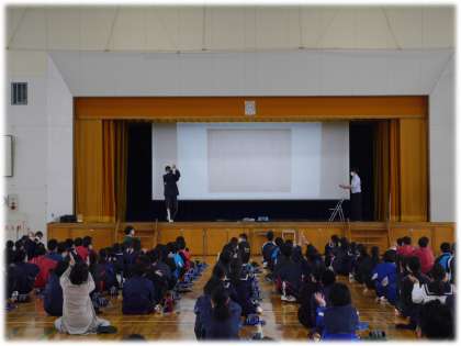 1・2年生それぞれに、今年度を締めくくる学年集会を行いました。