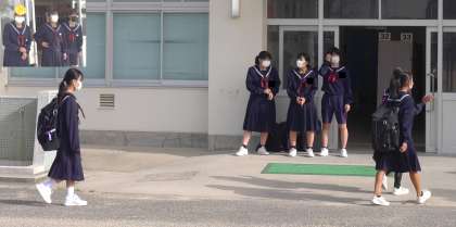 すてきな二人のあいさつは、豊南中の朝を優しく包み込んでいます。