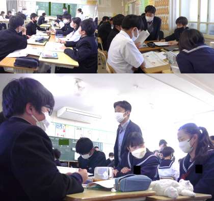 今日は、他学年と同様に、2年部の教員も一緒に授業を参観し、生徒とともに創る授業を学び合いました。