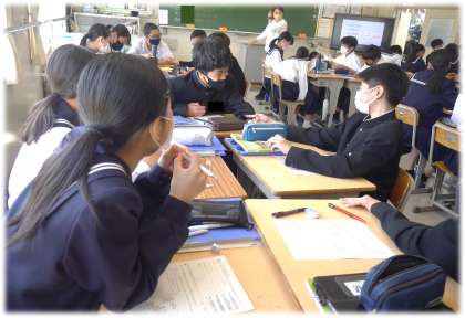資源やエネルギー確保について、班ごとに考えを伝え合っています。