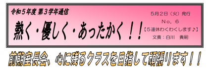 【5月2日発行】3年生学年通信 第6号