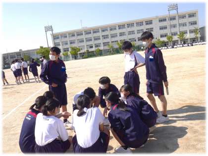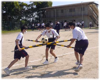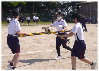 トラ柵リレー、観るのと実際にやるとでは大違い。いかにボールを落とさずに、3人の息を合わせて走り抜けられるのか。これからの学級内の技の伝授、作戦がどのように磨かれ合っていくのか、楽しみですね。