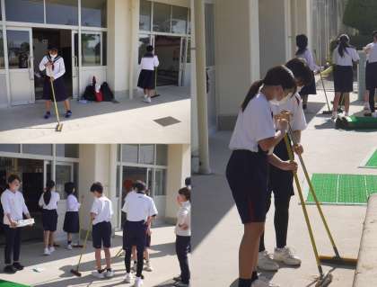 各学年昇降口でも、登校してくる仲間にあいさつの言葉を交わしながら、黙々と掃き掃除をしている姿に頭が下がります。