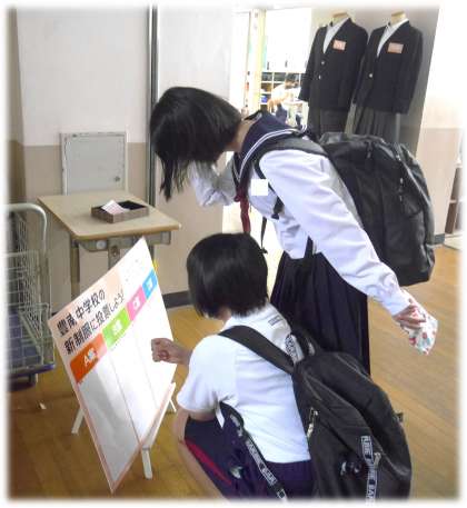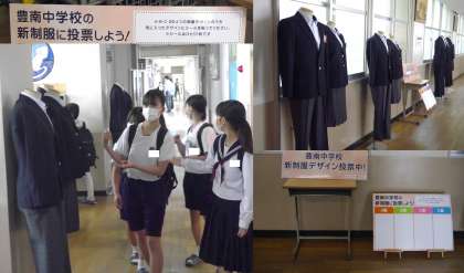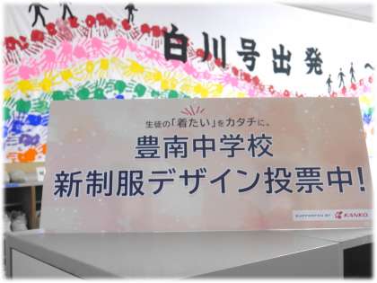 学年昇降口に令和6年度から導入される新標準服(制服)の生徒による投票が始まっています。