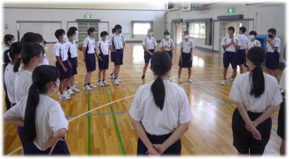 活動前や活動後、自然と学級の仲間が一つの輪になって、自分たちの取組について確認し合っています。
