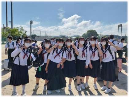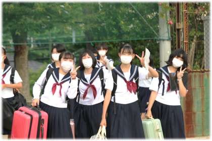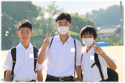 3年生みんなの思いが天に届いたのか、明け方までの雨を感じさせない青空が登校してくる3年生の表情をより輝かせています。
