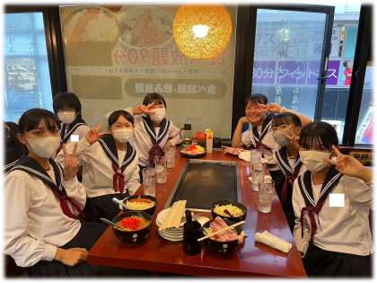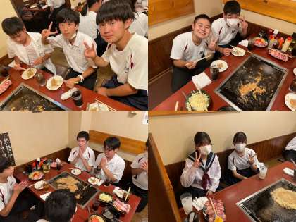 そして、7組は浅草へ。 1日目の夕食は、もちろん「もんじゃ焼き」です!