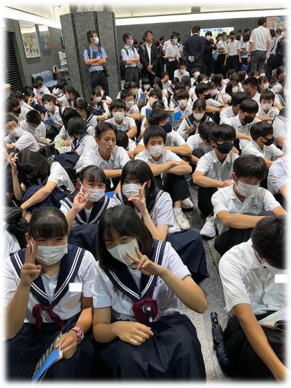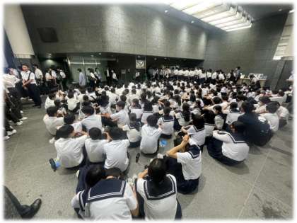 この日は、見学予定の中学校等が多く、ロビーは大混雑でした。