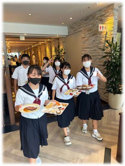 学級の仲間とわいわい話しながら、思い思いに盛り付ける時間も、また楽し・・・。