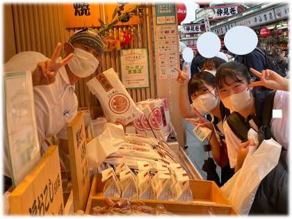 名物人形焼の店主も、一緒にはい!ポーズ!