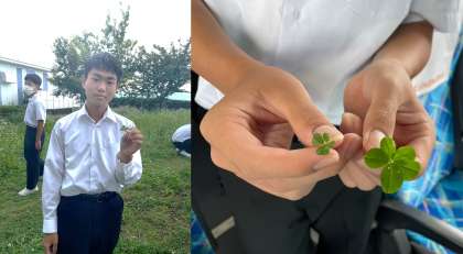 「あっ、見つけた!幸せの四つ葉のクローバー!!」
